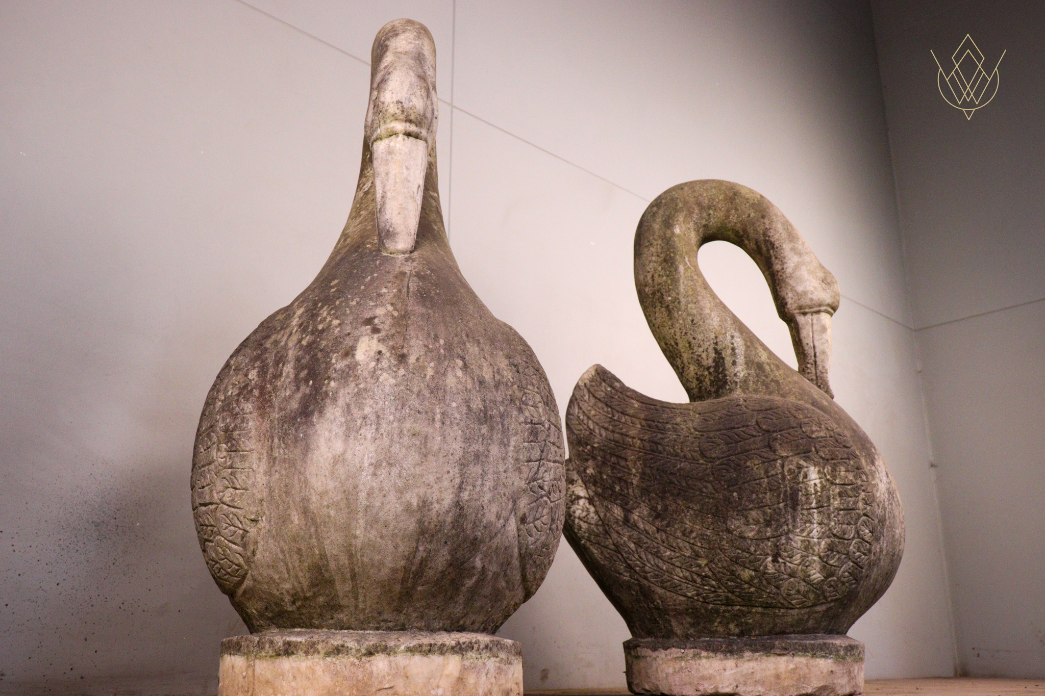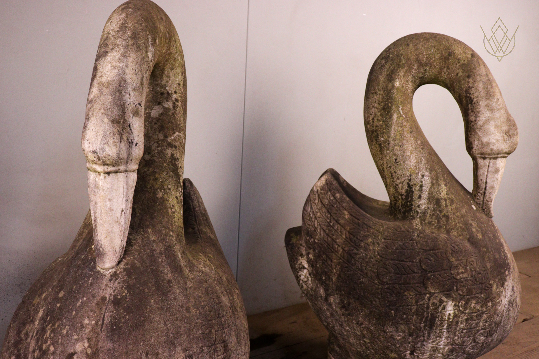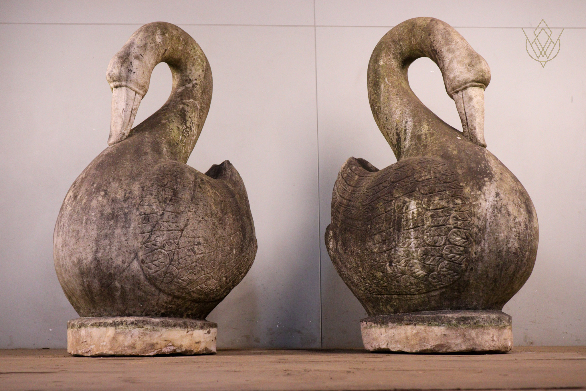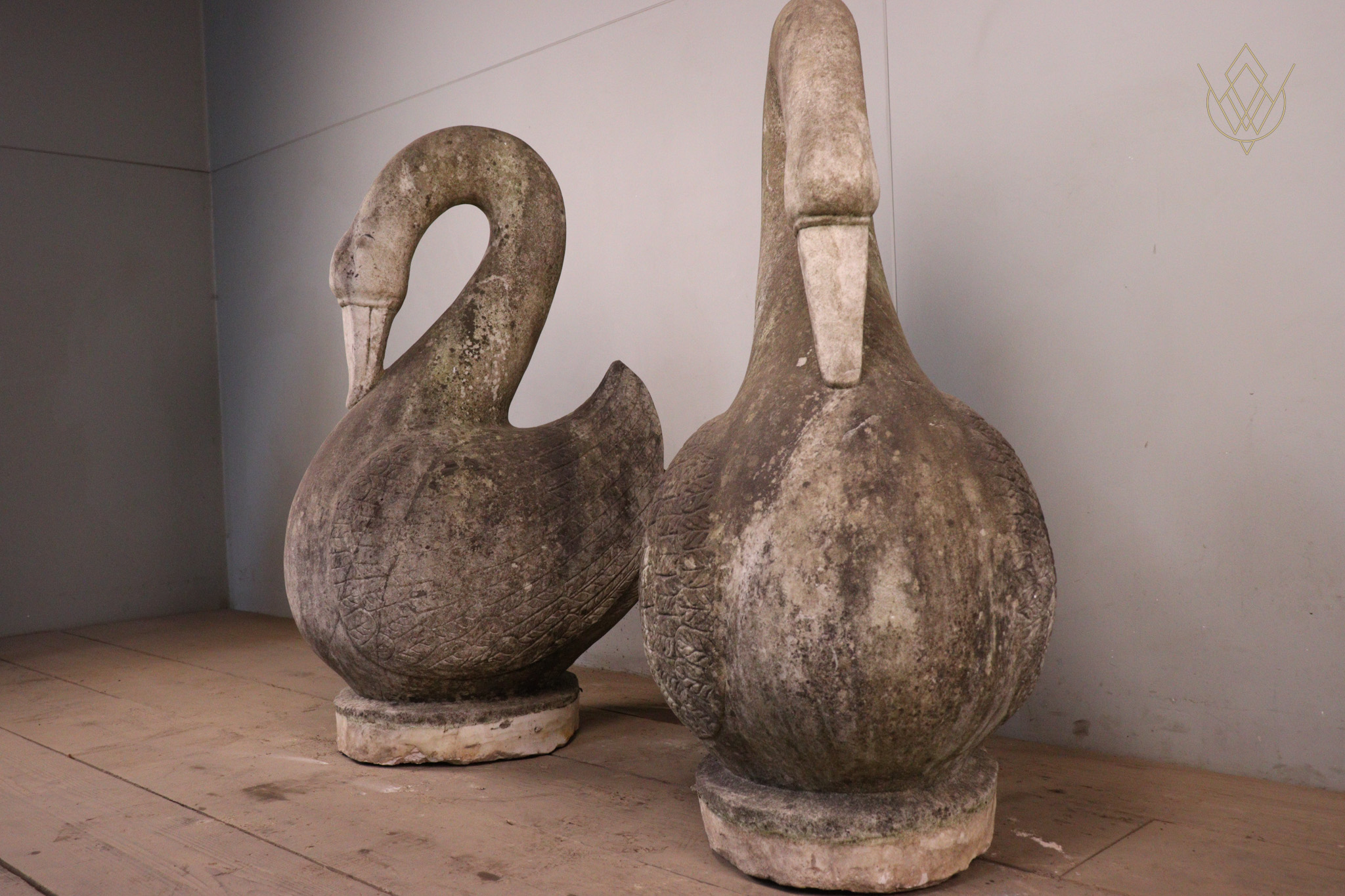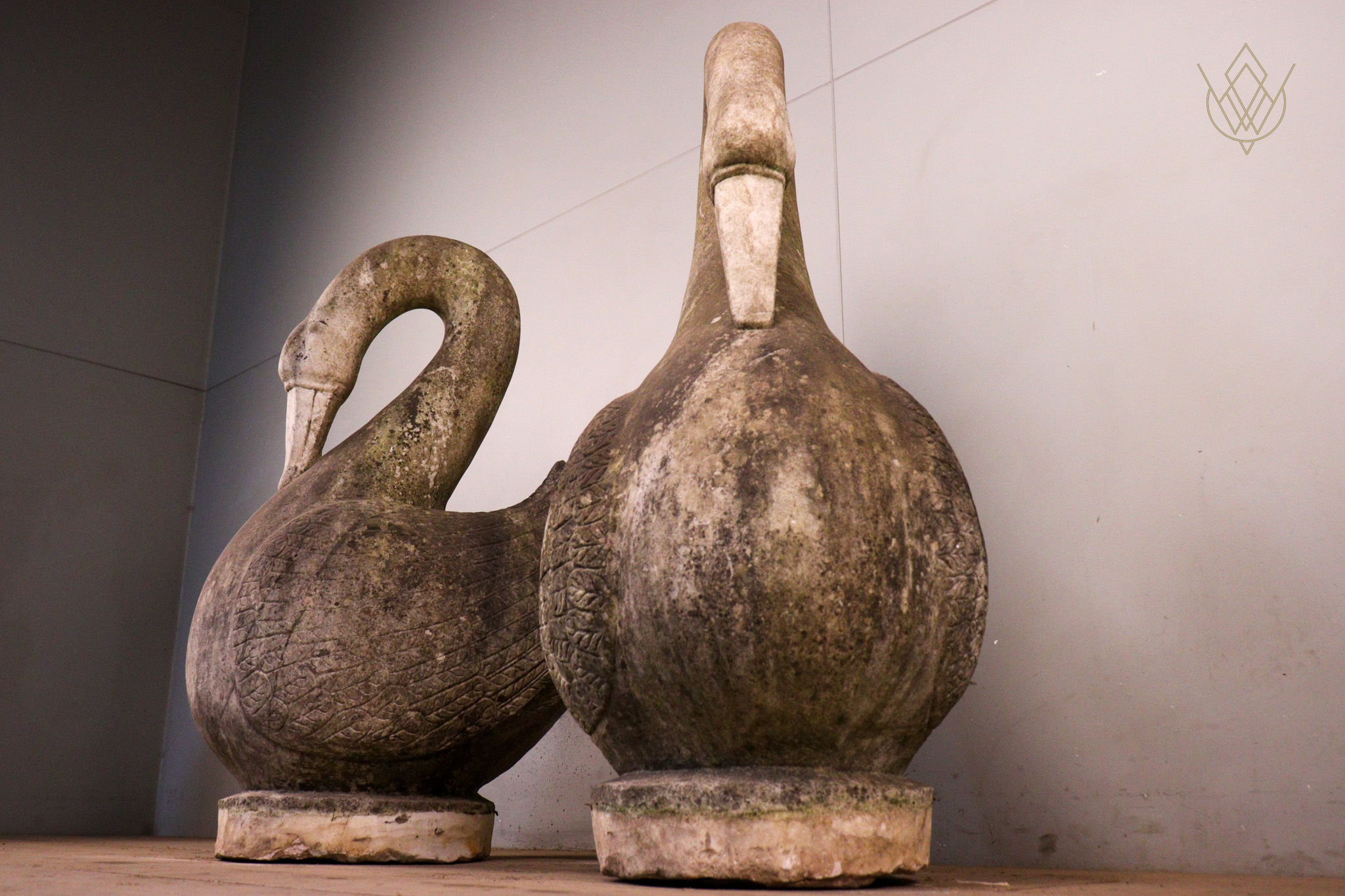 Large Pair of Hand Carved Marble Swans – WM12412