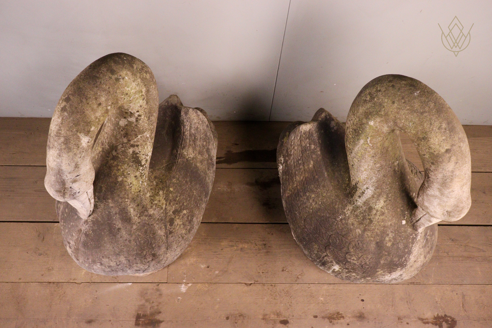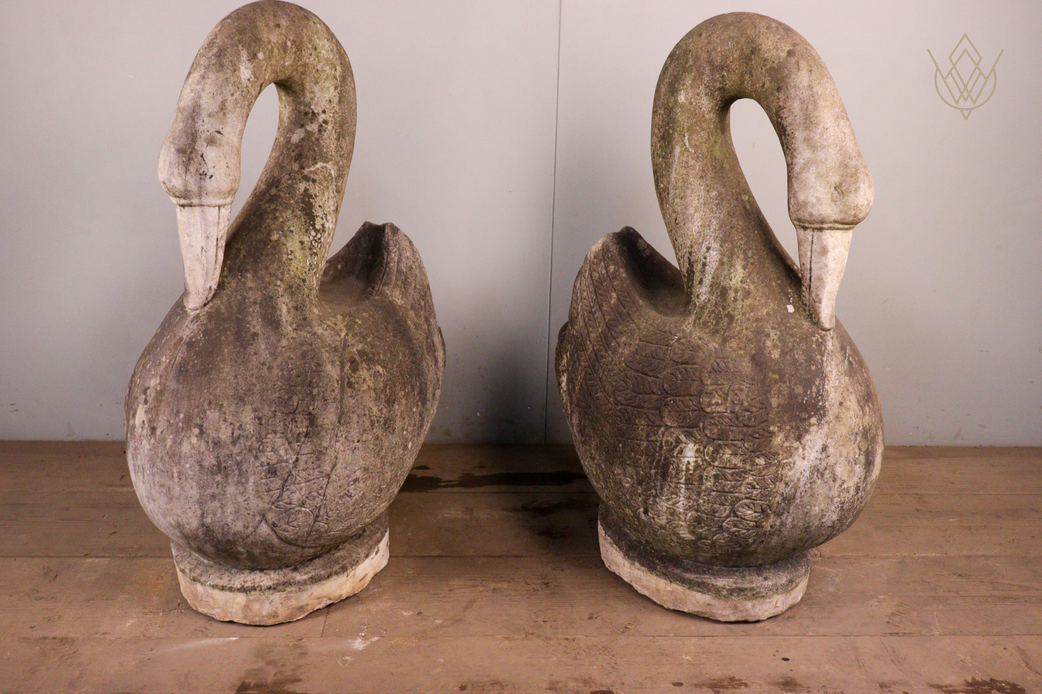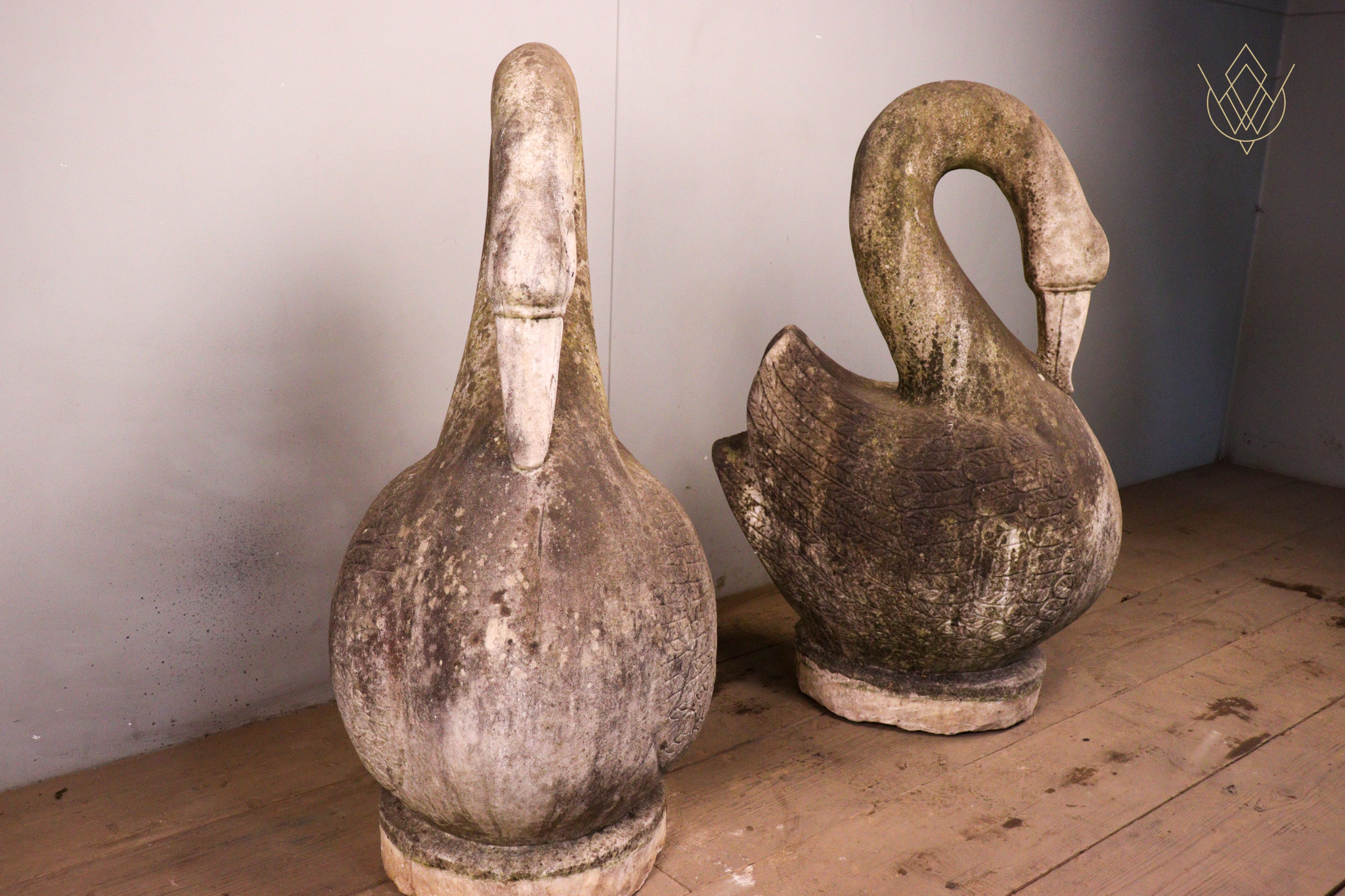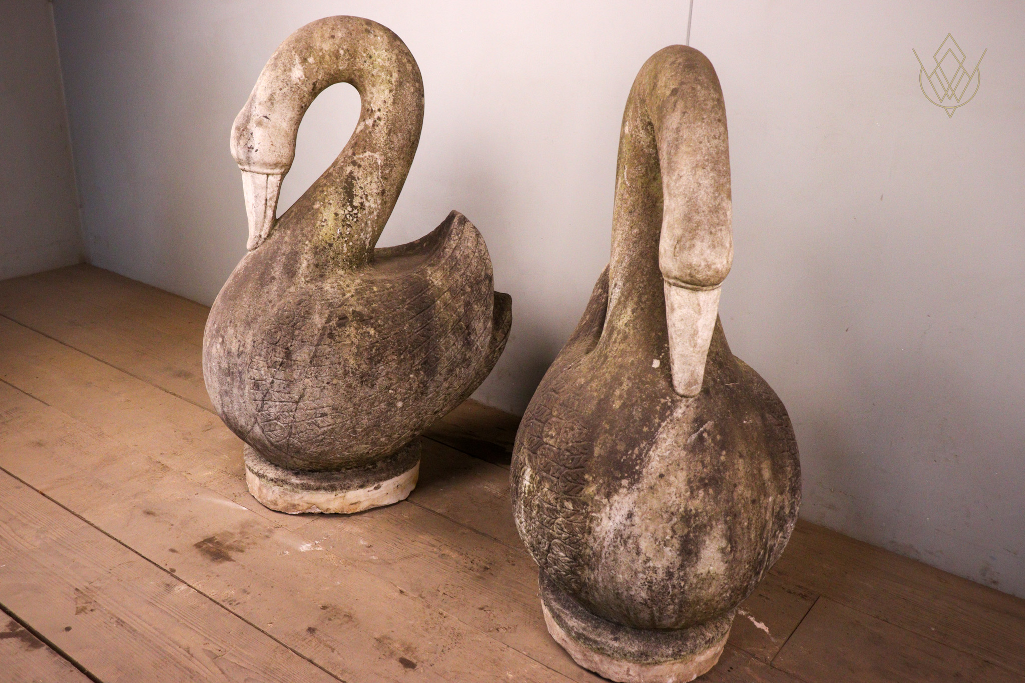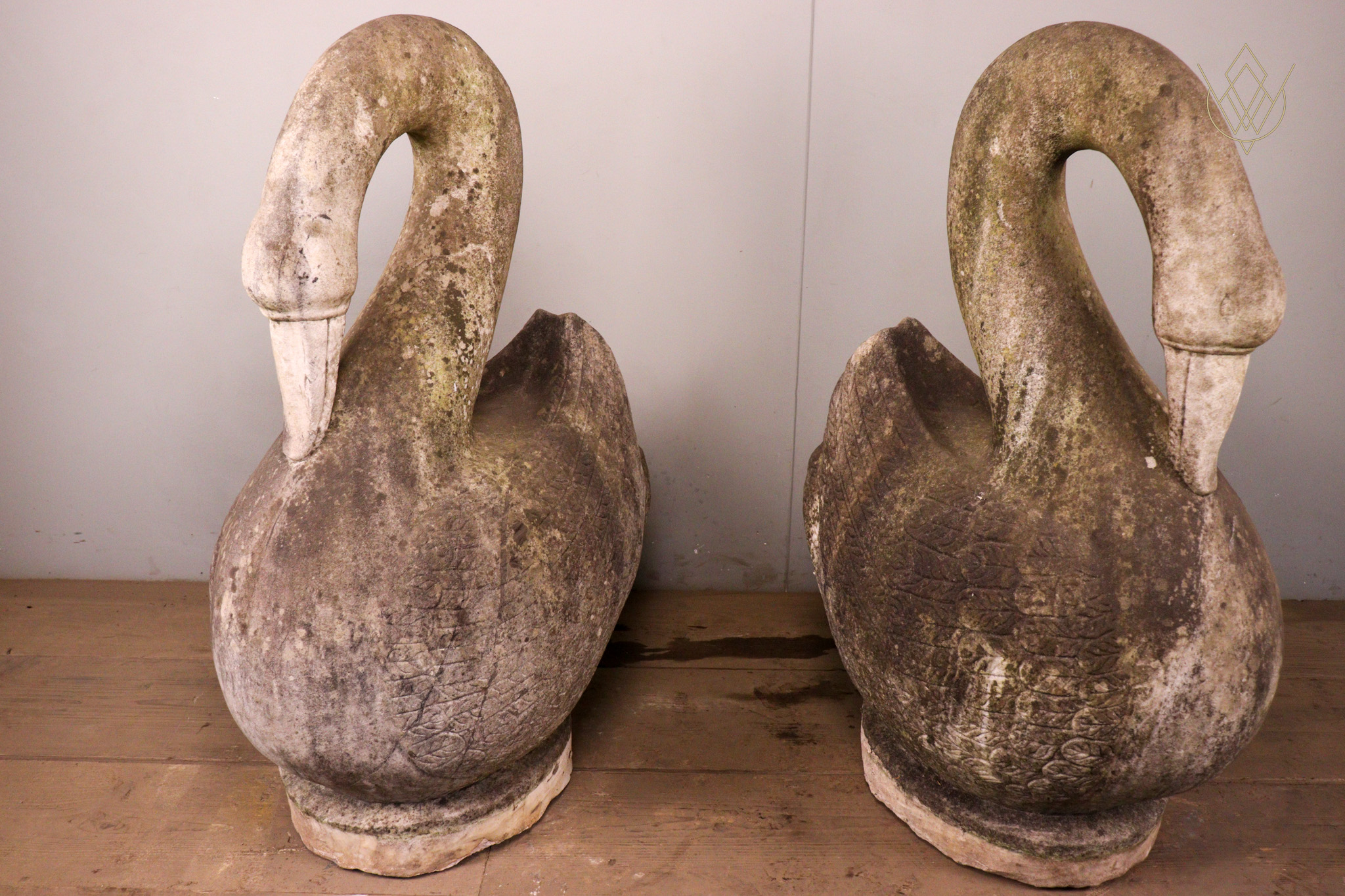 Large Pair of Hand Carved Marble Swans – WM12412
