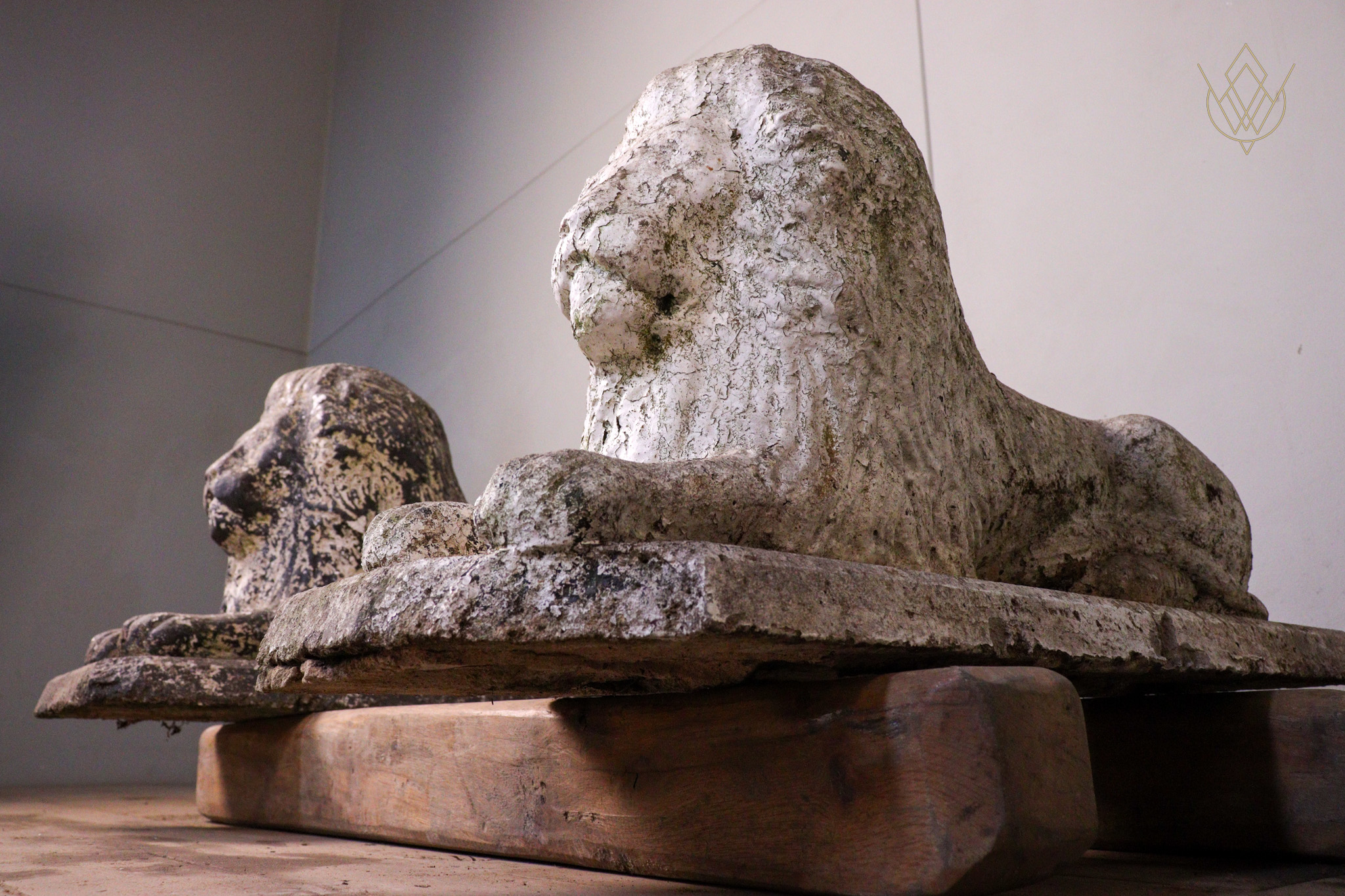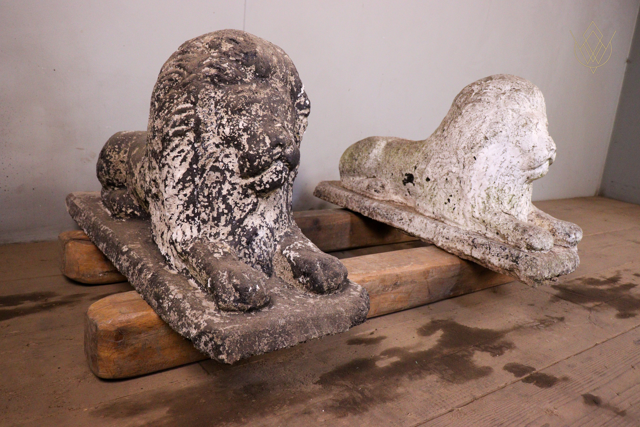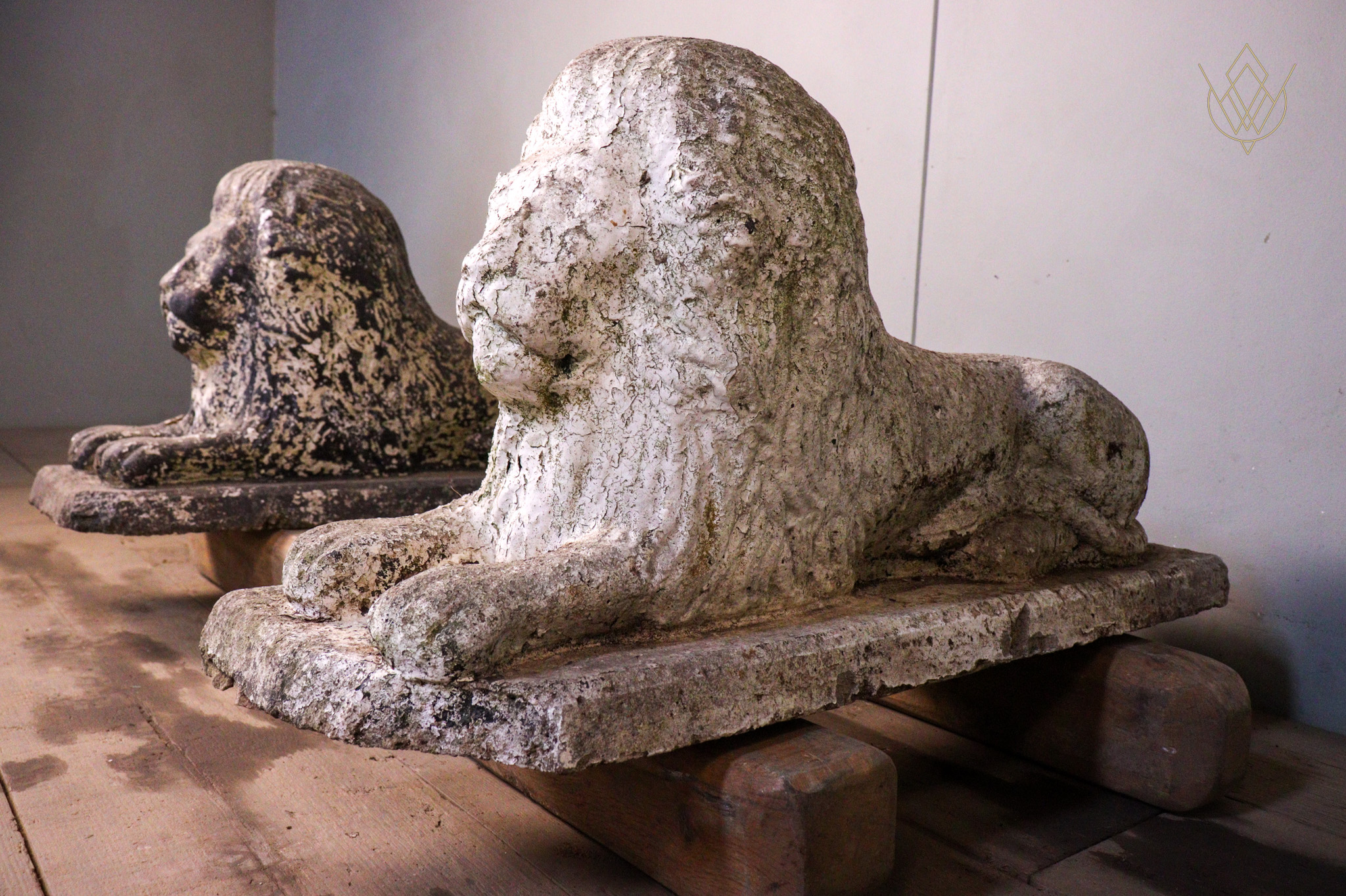 Pair of Cast Stone Lions – WM12453