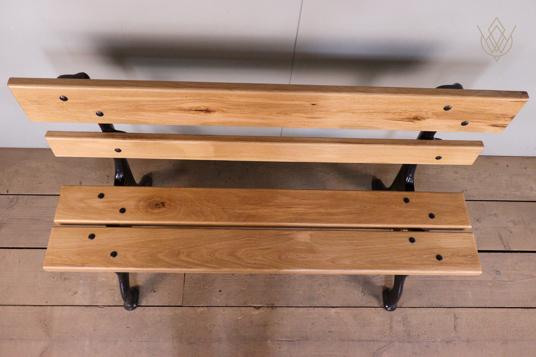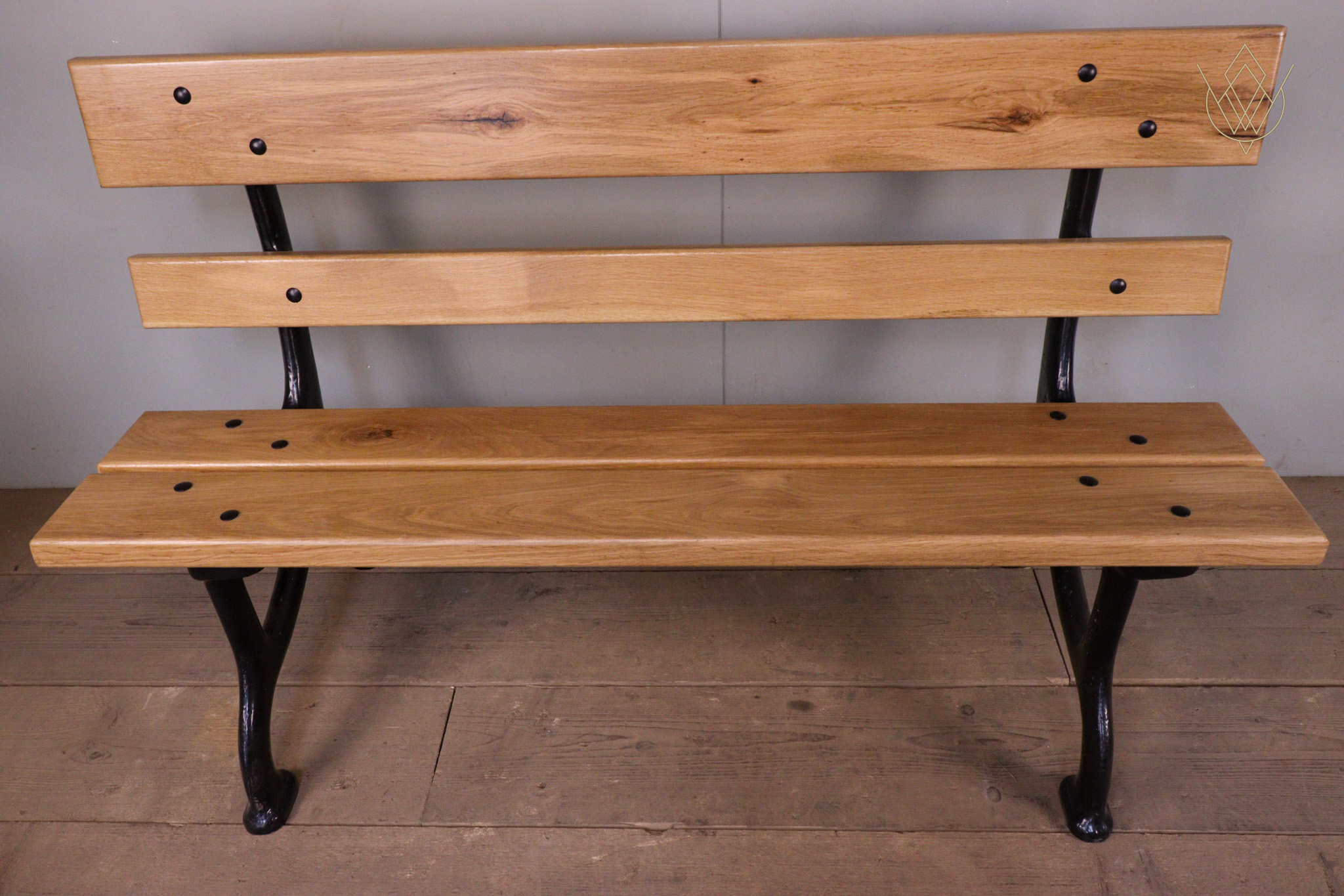 Refurbished 19th Century Cast Iron Park Bench with Oak Slats – WM12194